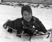 Winter fun. There was no hill in our yard, so I presume I had to be