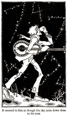 ![]() How Henry Hagglyhoagly Played the Guitar with His Mittens OnSometimes in January the sky comes down close if we walk on a country road, and turn our faces up to look at the sky. Sometimes on that kind of a January night the stars look like numbers, look like the arithmetic writing of a girl going to school and just beginning arithmetic. It was this kind of a night Henry Hagglyhoagly was walking down a country road on his way to the home of Susan Slackentwist, the |