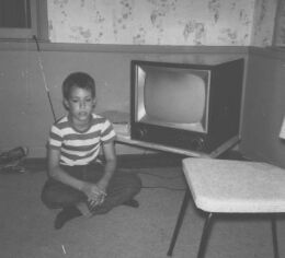 ![]() Here is my brother Charlie at about seven or eight years old. You can see my dad's hi-fi setup back there setting on the record cabinet. |
