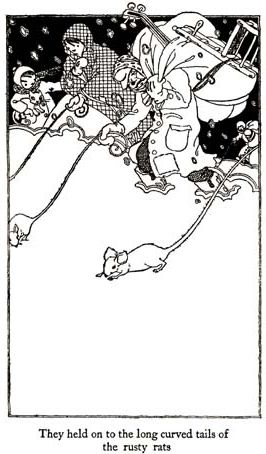 little bowl of hot catfish soup to keep me warm through the blizzard." And the four uncles all said together, "This is no time for rats to be aroundand we would like to ask you where you got the catfish in the basket." "Oh, oh, oh, pleasein the name of the five rusty rats, the five lucky rats of the Village of Cream Puffs, please don't," was the exclamation of Wing Tip the Spick. The uncles stopped. They looked long and deep into the eyes of Wing Tip the Spick and thought, as they had thought before, how her eyes were clear light blue the same as cornflowers with blue raindrops shining on the silver leaves in a summer sun shower. And the four uncles opened the door and let the gray rat come in with the basket and the catfish. They showed the gray rat the way to the kitchen and the fire and the salt. And they watched the rat and kept him company while he fixed himself a catfish soup to keep him |