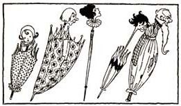 "Well, lend us a parasol apiece," said all three. "Gladly, most gladly," said the clerk. "How do you do it?" asked Eeta. "I don't have to," answered the spider clerk. "How did it begin?" "It never was otherwise." "Don't you ever get tired?" "Every parasol is a joy." "What do you do when the parasols are gone?" "They always come back. These are the famous twisted-nose parasols made from the famous pink grass. You will lose them all, all three. Then they will all walk back to me here in this store on main street. I can not sell you something I know you will surely lose. Neither can I ask you to pay, for something you will forget, somewhere sometime, and when you forget it, it will walk back here to me again. Look—look!" As he said, "Look," the door opened and five |
