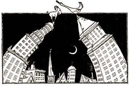 ![]() The Two Skyscrapers Who Decided to Have a ChildTwo skyscrapers stood across the street from each other in the Village of Liver-and-Onions. In the daylight when the streets poured full of people buying and selling, these two skyscrapers talked with each other the same as mountains talk. In the night time when all the people buying and selling were gone home and there were only policemen and taxicab drivers on the streets, in the night when a mist crept up the streets and |