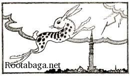 "We jump five jack-rabbits, five long-legged spider jack-rabbits over the highest skyscraper you got in your city," they answered him. "If it's free and you don't sell anything nor take any money away from us while it is daylight and you are giving your performance, then here is your license permit," said the mayor speaking in the manner of a politician who has studied politics. Thousands of people came to see the show on the public square. They wished to know how it would look to see five long-legged, spider jack-rabbits jump over the highest skyscraper in the city. Four of the jack-rabbits had stripes. The fifth had stripes—and spots. Before they started the show Young Leather and Red Slippers held the jack-rabbits one by one in their arms and petted them, rubbed the feet and rubbed the long ears and ran their fingers along the long legs of the jumpers. "Zingo," they yelled to the first jack-rabbit. |